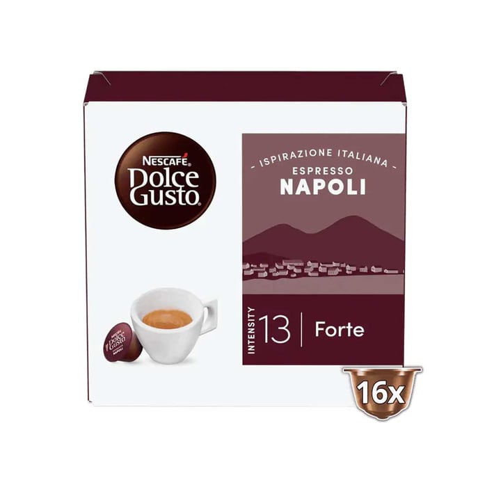 Италианският град Неапол е известен с това, че кафето е истинска страст от 18-ти век. Всяка глътка NESCAFE® Dolce Gusto® Ispirazione Italiana Espresso Napoli сякаш те пренася до неговите очарователни кафенета.В готовата чаша кафе Ispirazione Italiana Espresso Napoli, се завихрят силни печени нотки, чиито послевкус продължава да се задържа след като отпиеш. Това еспресо представлява кафе напитка с наситени аромати и богат тъмен каймак.100% от кафето е с устойчив произход, пристигащо от сертифицирани или проверени фермери, които прилагат независими високи стандарти със социални, икономически и екологични практики, подпомагайки по-доброто бъдеще на кафето.Интензитет: 13.Количество на опаковката: 16 капсули.