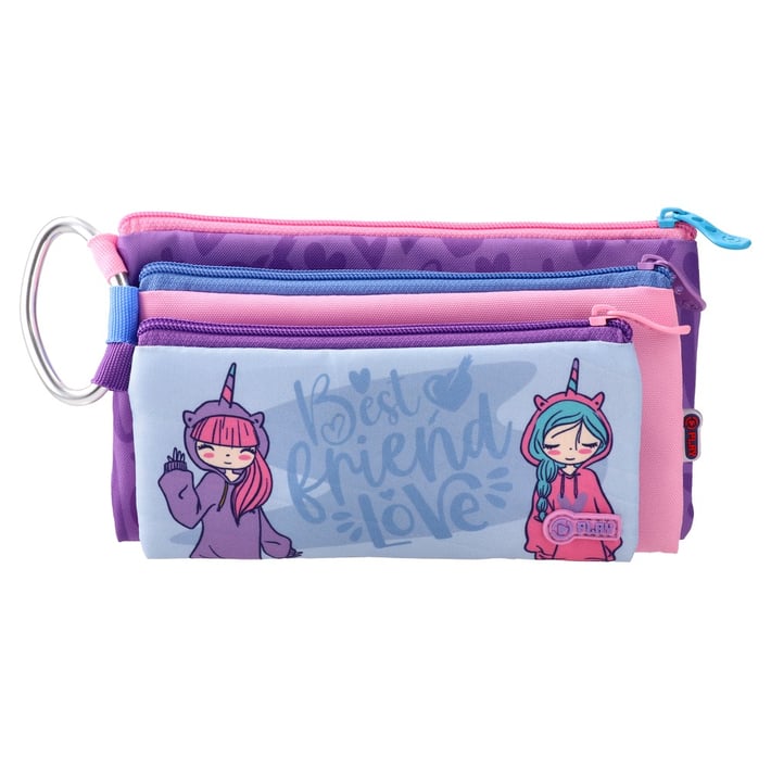 Практичен и здрав несесер с три ципа, проектиран за удобна организация на ученическите принадлежности. Изработен от висококачествен полиестер 600D с тройно подсилени шевове и водоустойчива тъкан, той е лек, издръжлив и подходящ за ежедневна употреба.Идеален избор за ученици, които търсят надежден, функционален и дълготраен несесер.Размери:23 x 13 x 3 cm.