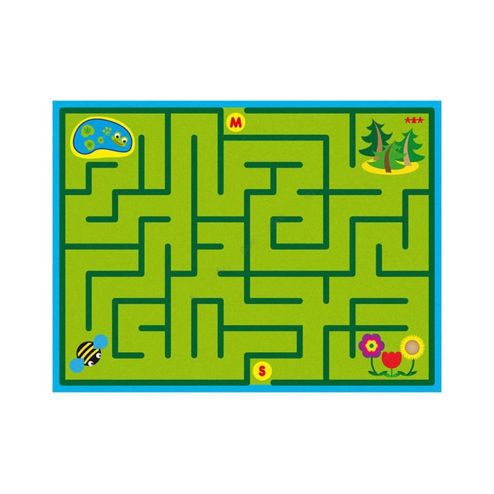 Детският килим с дизайн на лабиринт ще осигури на детето часове игри и забавления. То ще трябва да премине през лабиринта и да стигне до цветето, пчелата, жабата или гората.