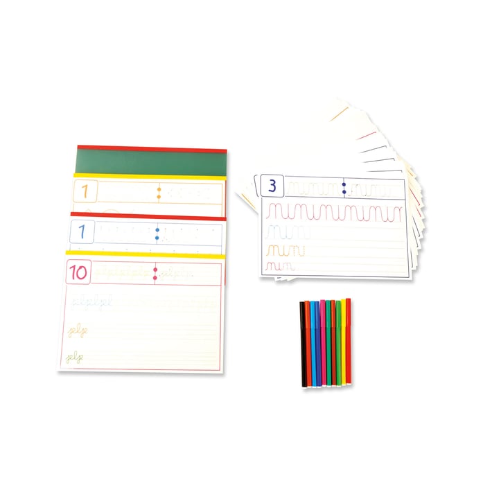 Комплектът съдържа всичко необходимо за насъраване на уменията за писане при децата.