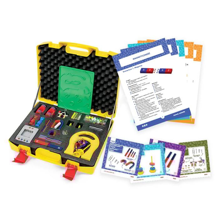 Съдържанието на куфарчето позволява на учениците да провеждат прости експерименти в областта на магнетизма.