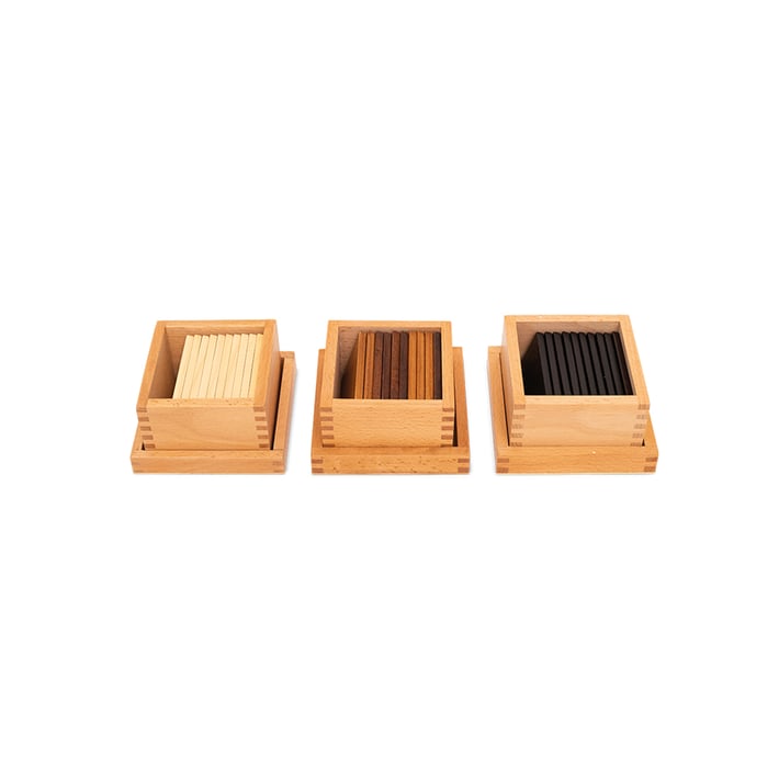 Продуктите позволяват на децата да придобият знания, компетентност, умения и опит чрез собствените си действия, ангажиращи всички сетива. Учебните материали, включително математически, ботанически и географски карти, са в класически форми, изработени от висококачествено дърво.