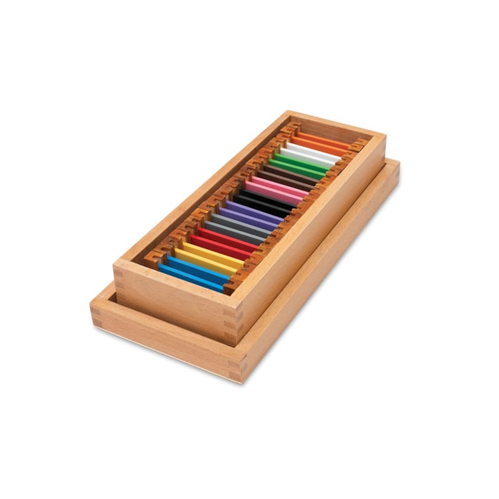 Тази кутия от Монтесори е от съществено значение за придобиване на способността да се различават, идентифицират и назовават основните, вторичните и ахроматичните цветове. Също така позволява на учениците да експериментират с цветовете - принципът на смесване на цветовете, получени от основните цветове.