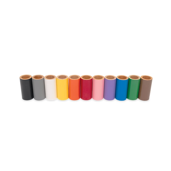Цветни поставки за пастели в основен, вторичен и ахроматичен цвят. Те позволяват на учениците да съхраняват правилно своите вещи и да поддържат пространството чисто.