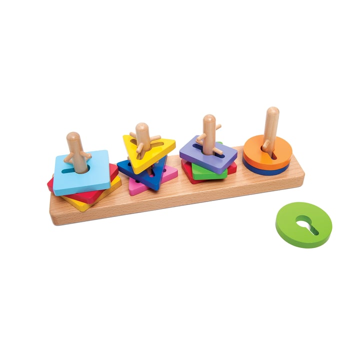 • Играта учи децата да махат и да слагат обратно различните формички. Децата ще научат 4 различни форми и много цветове.