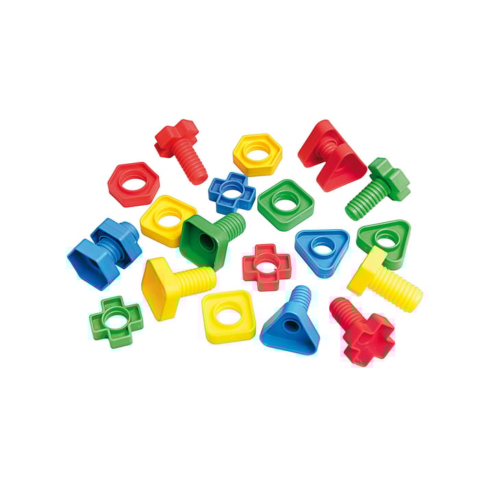 Комплектът съдържа 32 винта и 32 гайки в 4 цвята и 4 форми.
