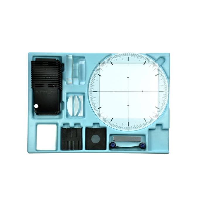 -експериментална лампа в пластмасов корпус за използване на маса или на оптична пейка с опора;