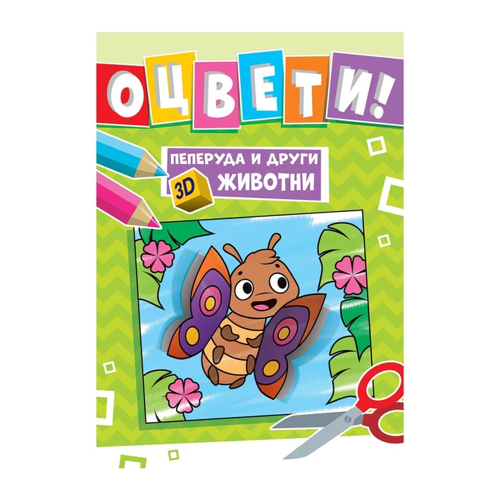 Потопете детето си в света на триизмерното оцветяване с книжката "Пеперуда и други 3D животни – Оцвети!" Тази уникална книга за оцветяване предлага творчески занимания с 3D ефект, като позволява на децата да изрежат детайлите и да ги прикрепят към илюстрациите, придавайки обемност на животните. Подходяща за деца на възраст 3-5 години. Брой страници: 24. Формат: 21 х 29.7 cm.
