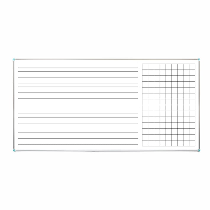 Бяла магнитна дъска за писане с борд маркери.Подходяща за използване в детски градини, училища, офиси и в дома.Възможност за закрепване на различни магнитни пособия.Разграфена на редове и квадратчета.