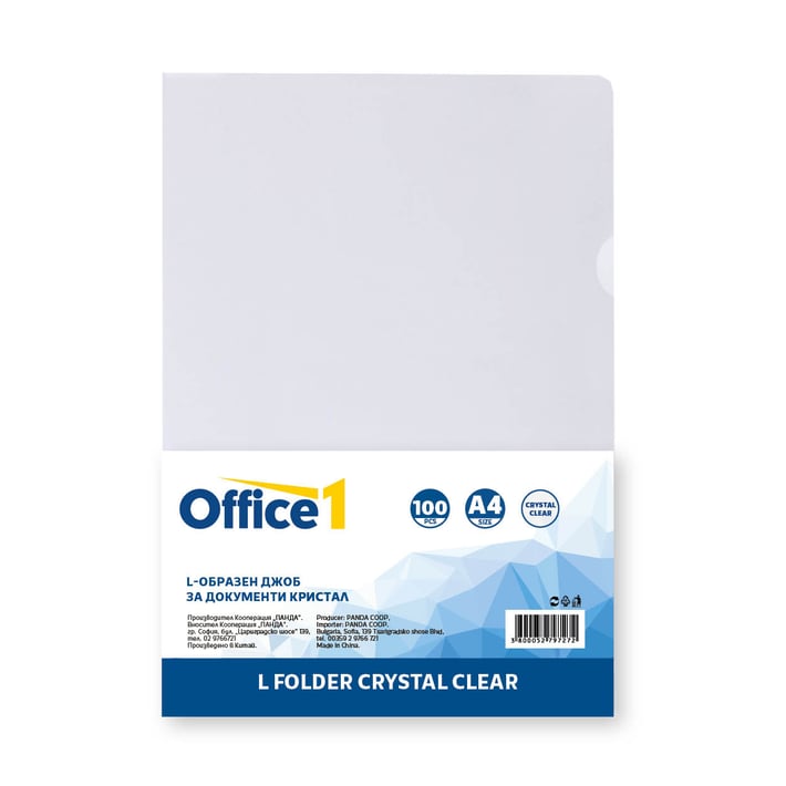 Office 1 Джоб за документи, L-образен, A4, 90 микрона, кристал, 100 броя