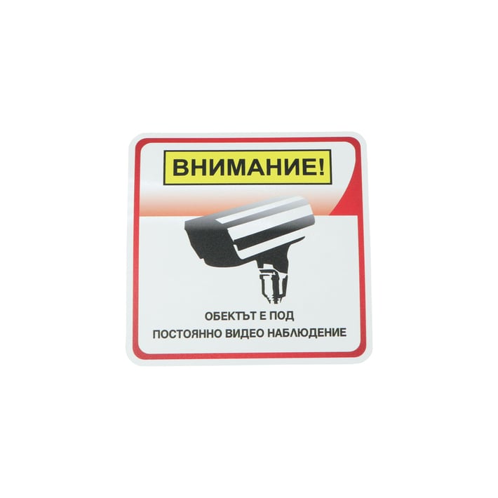 • Самозалепващ се етикет с пиктограма "Обектът е под постоянно видеонаблюдение".