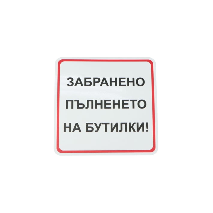Самозалепващ се етикет с пиктограма "Забранено пълненето на бутилки".