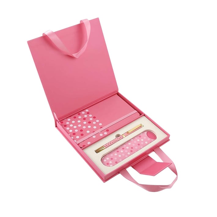 Office 1 Подаръчен комплект Pretty, 3 в 1, тефтер А6, химикалка и калъф, в кутия, розов
