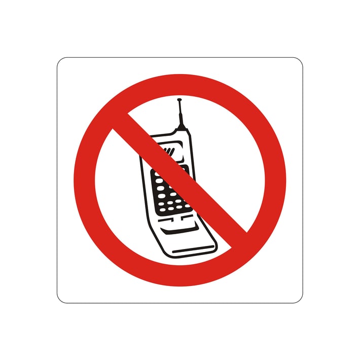 • Самозалепващ се етикет с пиктограма забранено за мобилни телефони.