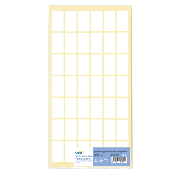 Office 1 Самозалепващи се етикети за цени, 17 x 30 mm, бели, 420 броя