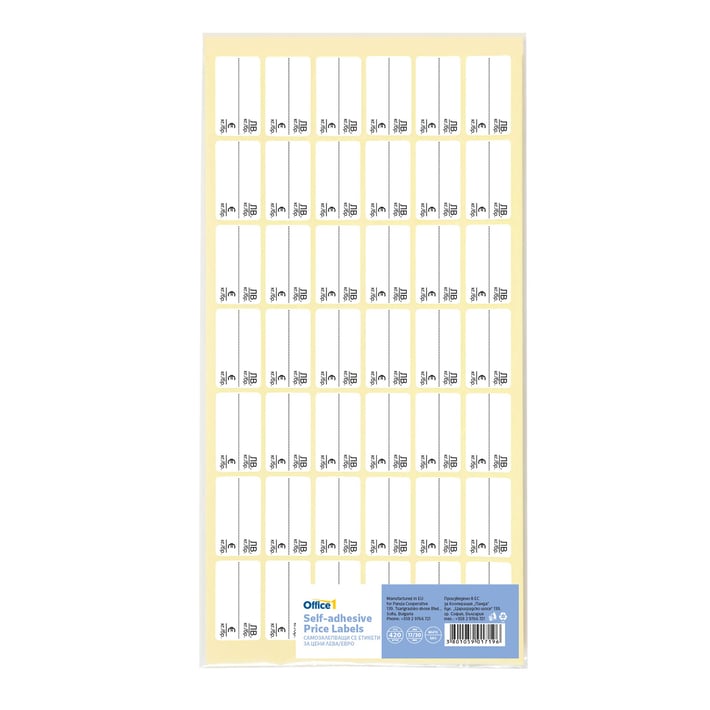 Office 1 Самозалепващи се етикети за цени, 17 x 30 mm, бели, лева и евро, 420 броя