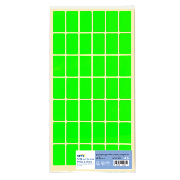 Office 1 Самозалепващи се етикети за цени, 17 x 30 mm, зелени, 420 броя