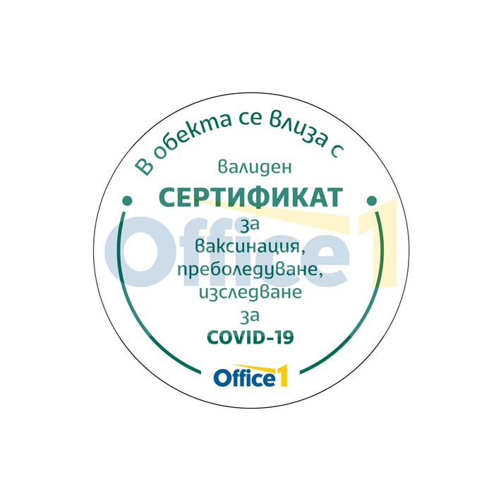 • Стикер "Зелен сертификат", подходящ за залепване върху врата.