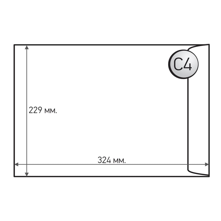 • Пощенски пликове, формат C4, с отваряне по тясната страна.