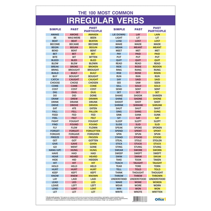 Office 1 Ученическо табло ''Неправилни глаголи в английския език'', A3