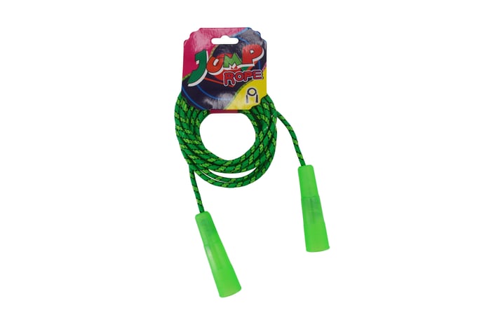 Здраво и удобно въже за скачане, подходящо за ежедневни тренировки, игри и спортни занимания. Ергономичните дръжки от PP материал осигуряват стабилен и удобен захват, дори при по-интензивно натоварване.Въжето е изработено от PVC с диаметър 0.45 cm, което гарантира дълготрайност, гъвкавост и плавно въртене по време на скачане.Компактно, леко и лесно за пренасяне, то е идеален аксесоар за развитие на координацията, издръжливостта и двигателните умения – забавен и ефективен начин да поддържате форма.Дължина на въжето: 2.4 m.Дължина на дръжката: 11.4 cm.