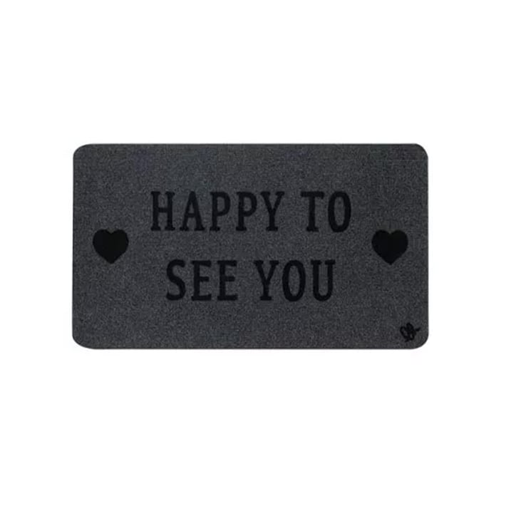 Изтривалка Olivo Zeus - Happy to see you, 100% полиестер, 40 х 70 cm, сива
