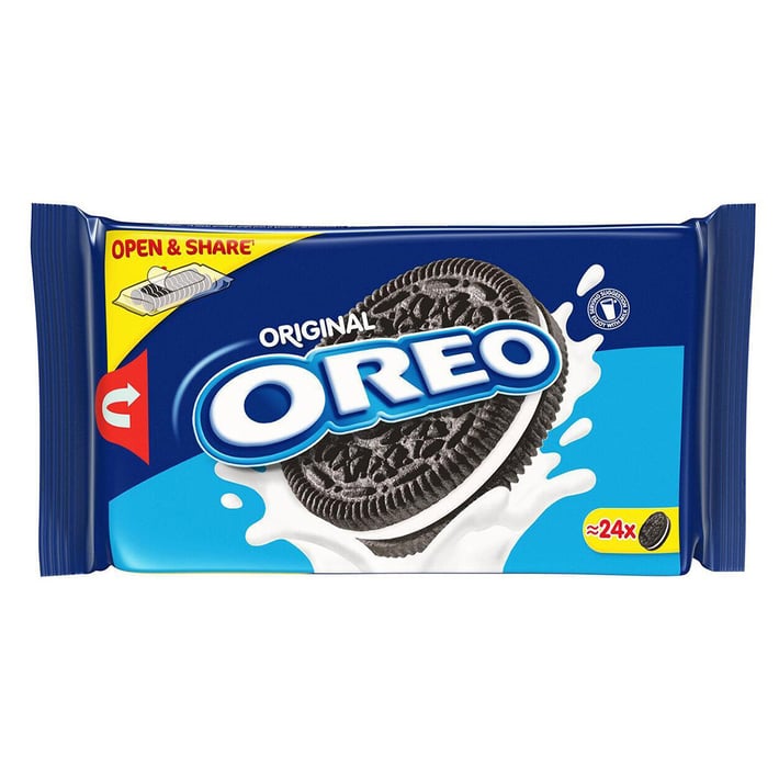 Орео бисквитки с сладък пълнеж и две хрупкави бисквитки с аромат на ванилия, аромат, който предлага вкусна и новаторска комбинация.
