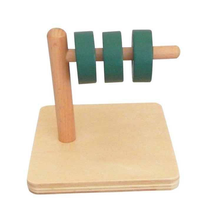 Монтесори материал, който се състои от дървена основа, на която има забита вертикална ос с прикрепена хоризонтална ос. Има три дървени диска, които детето трябва да постави на хоризонталната ос.