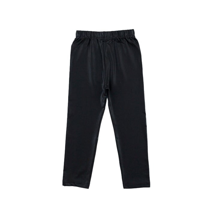 Черен панталон за момче от лъскава материя с ластик на кръста.