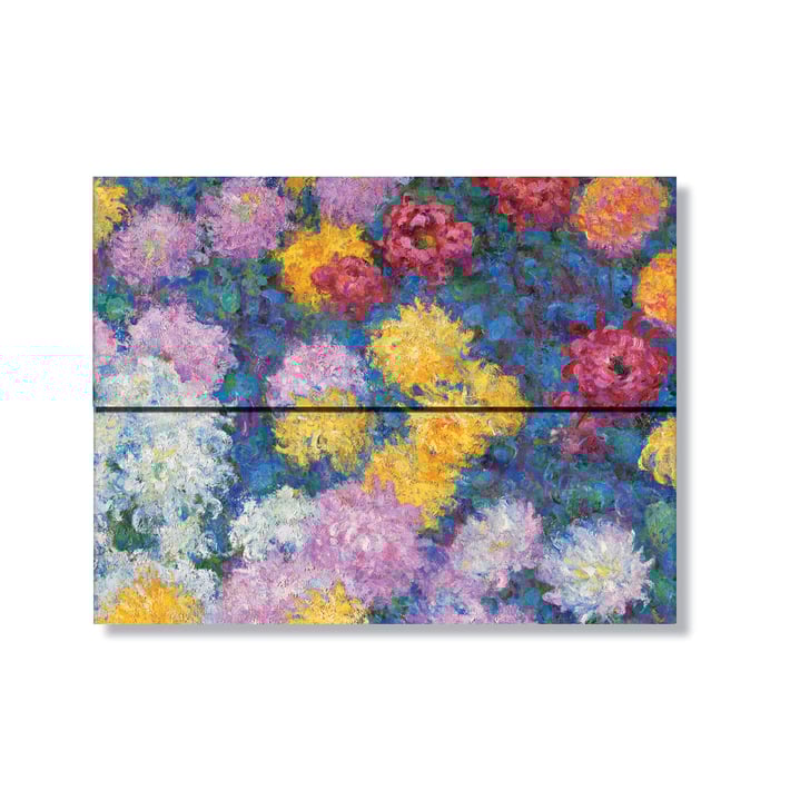 Моне е един от ключовите художници на импресионистичната епоха. След като закупува имот в Живерни, Франция, през 1890 г. Моне се заема да проектира обширна градина, която да заприлича на жива картина. Именно тази градина е голямата страст на Моне и вдъхновение за най-известните му творби, включително поредица от платна, наречена „Хризантеми“. Тази папка на Paperblanks изразява любовта на художника към цветето и носи атмосферата на неговата лична градина.