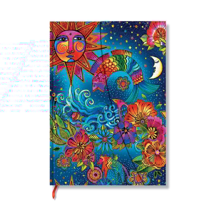 Творчеството на самоукия художник Лоръл Бърч е вдъхновението за този артистичен дизайн на Paperblanks. В него присъстват типичните за артиста форми като луни, слънца, ярки багри и летящи риби.