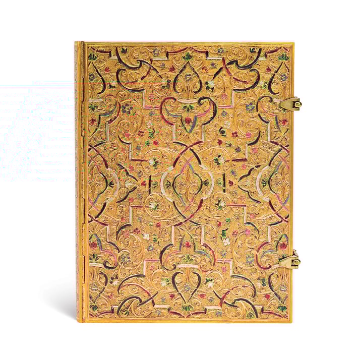 Подвързията от 19-ти век, пресъздадена на тази корица със златна инкрустация, била съставена от твърд метал, покрит с фин слой злато и гравиран от квалифицирани майстори.