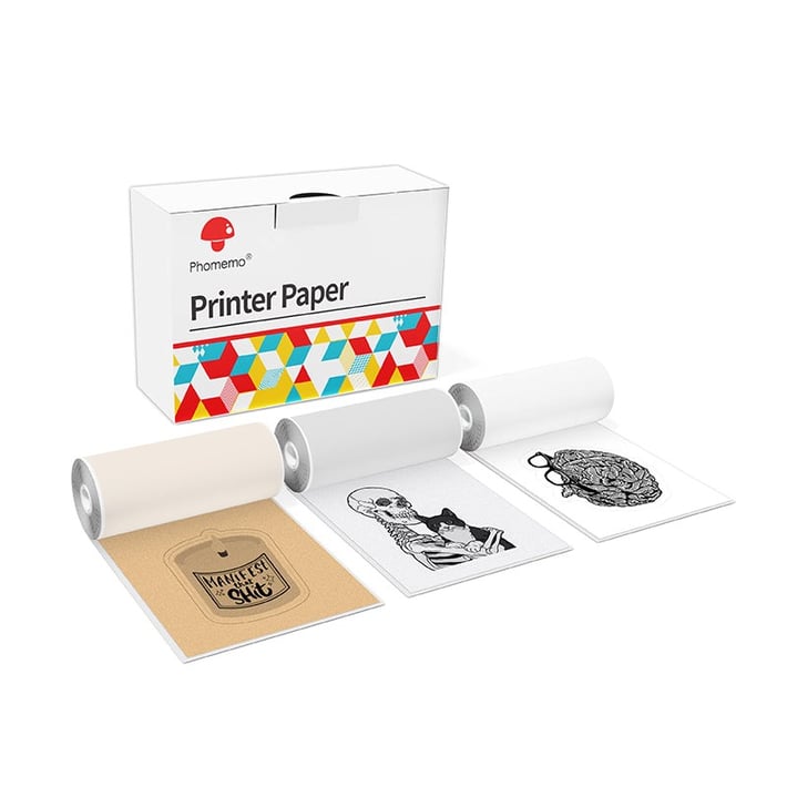 Комплект от 3 ролки самозалепващи се термични етикети за мини принтери Phomemo T02, идеални за отпечатване на снимки, стикери, бележки и етикети. Без мастило или ленти – използва директна термична технология, без допълнителни консумативи.