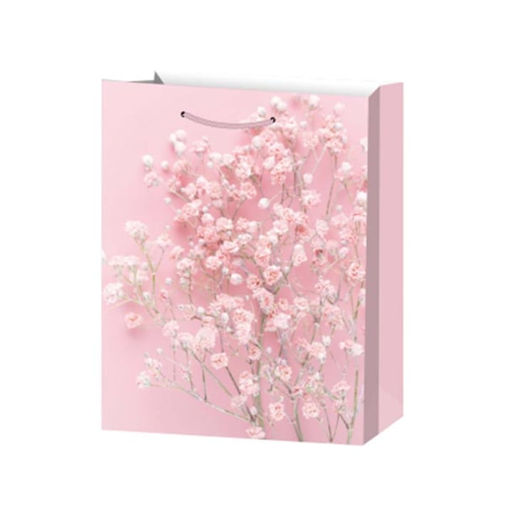 Подаръчна торбичка, цветя, 26 х 32 х 10 cm, розова