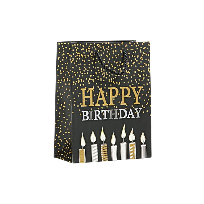 Подаръчна торбичка Happy Birthday, 18 х 23 х 8 cm, свещи черна