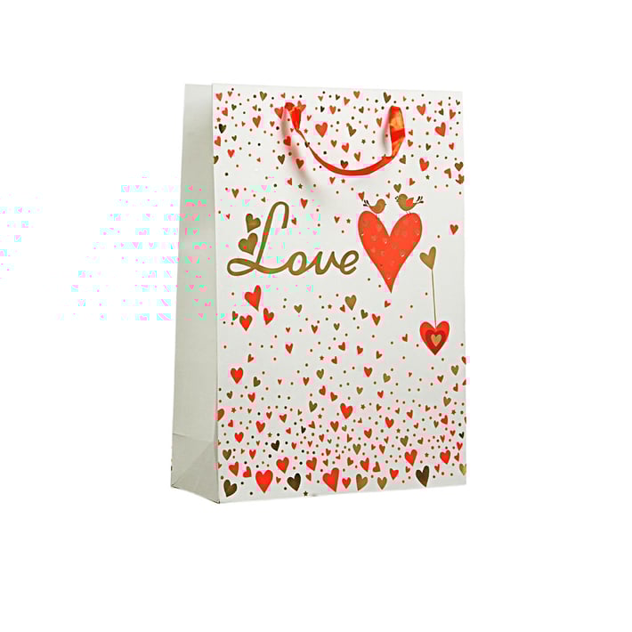 • Изразете чувствата си със стил с тази елегантна подаръчна торбичка, украсена със сърца и надпис „Love“. Перфектният избор за романтични поводи като Свети Валентин, годишнини или специални изненади за любим човек.