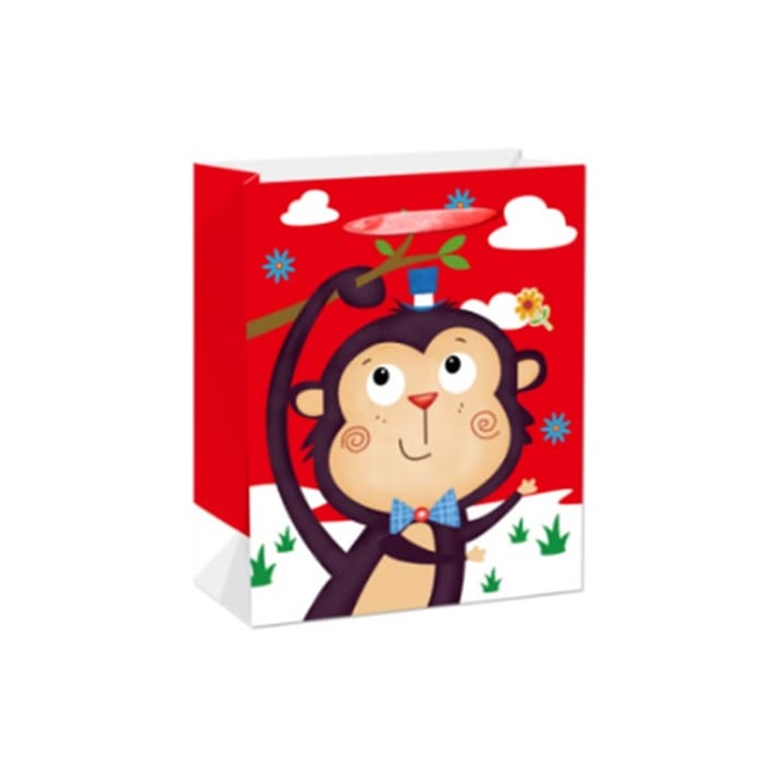 Подаръчна торбичка, маймуна, детска, 31 х 40 х 12 cm, червена