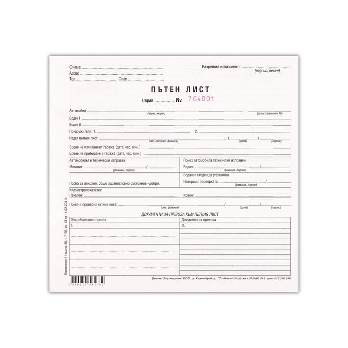 Пътен лист, универсален, 100 листа