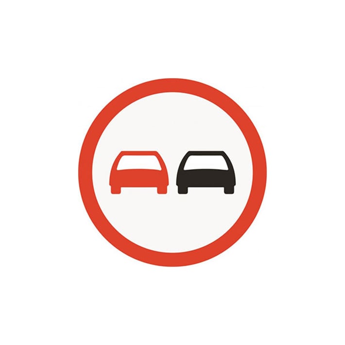 Пътен знак В24 – „Забранено е изпреварването на моторни превозни средства, с изключение на мотопеди и мотоциклети без кош“.