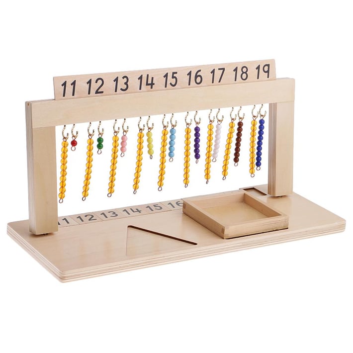 Монтесори рамката за нанизи е чудесен материал, който дава основа за изучаването на алгебра. Чрез закачването на нанизите на кукички децата развиват фината моторика на пръстите си и координацията между очите и ръцете.
