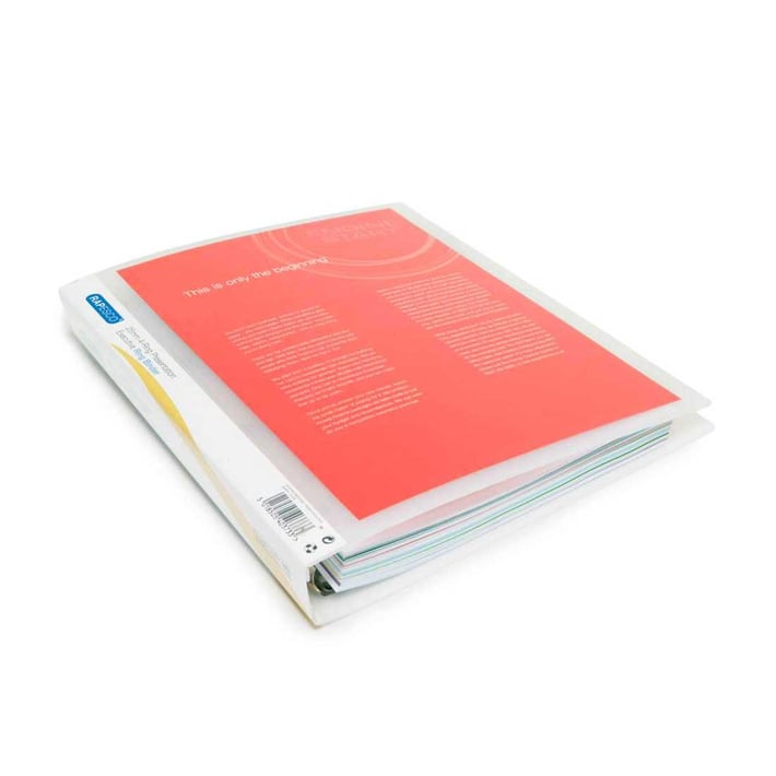Модерна папка за съхранение на документи с 4 O-образни ринга, изработена от прозрачен, текстуриран полипропилен с размер А4.
