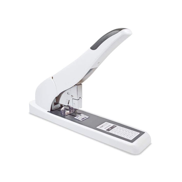 Разполага с гумена дръжка за удобство при употреба и гумени крачета за допълнителна стабилност на работния плот, което е особено полезно при захващане на по-голямо количество хартия.