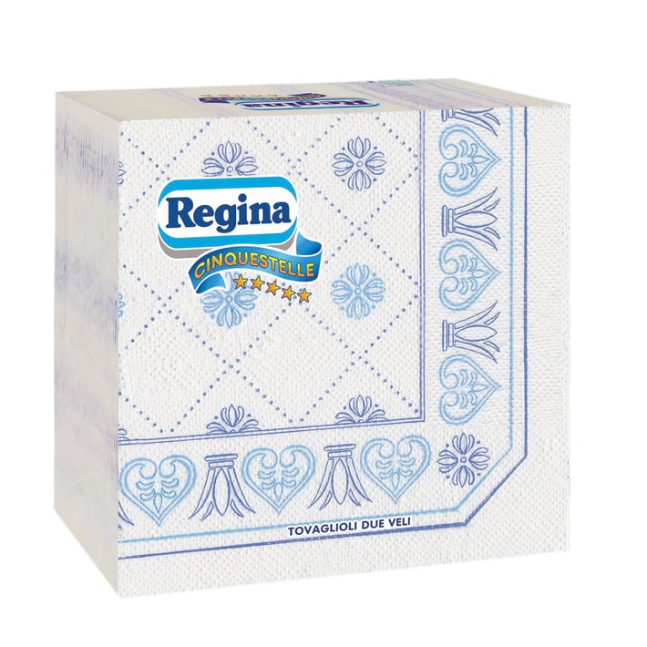 2-слойна салфетка, мека и здрава, със синя, деликатна бродерия, изработена изцяло от чиста целулоза и тествана за безопасност при контакт с храни.