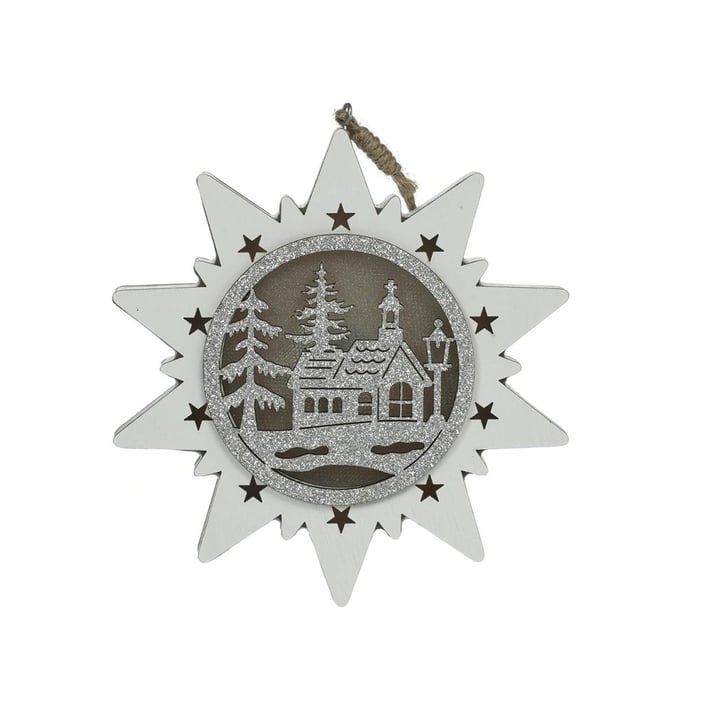 Звездата е оборудвана с 3 LED светлини в топло бяло и с деликатен 3D ефект, подчертана от сребристи отблясъци.