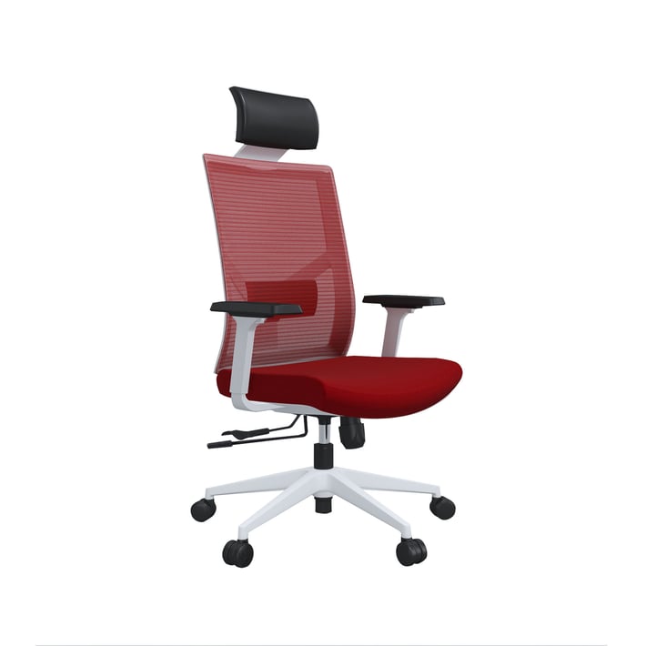 Иновативния дизайн и модерна визия, които безупречно следват тенденциите за ергономия на офис столовете, ще го направят чудесно попълнение към всеки интериор. Стилният му акцент е в изящната снежно бяла рамка и стабилната петлъчева основа, която ще Ви осигури мобилност през целия ден. За да поддържате добрия тонус на тялото си има допълнителна опора за главата, изработена от еко кожа, както и специално проектирана лумбална опора, която да държи всяка извивка на гръбначния стълб в правилна позиция и предотвратява появата на болки в гърба и лумбалната област при продължително седене. Дишащата материя тип „меш“, от която е изработена облегалката ще позволи на въздуха да преминава свободно и ще предпази гърба Ви от изпотяване и дискомфорт през горещите дни.