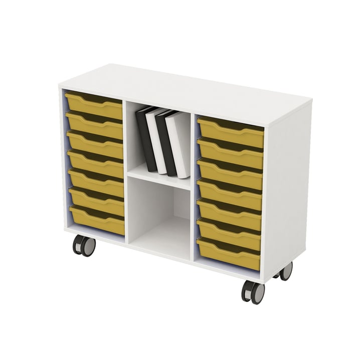 Етажерка RFG, с 14 жълти тавички, PP, 104 х 40 х 960 mm, ПДЧ 18 mm, бяла