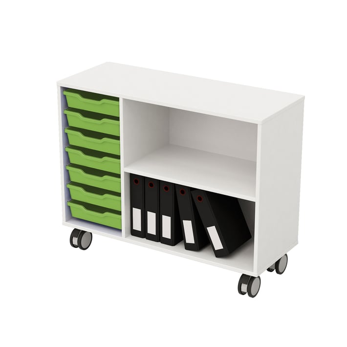 Етажерка RFG, със 7 зелени тавички, PP, 104 х 40 х 960 mm, ПДЧ 18 mm, бяла