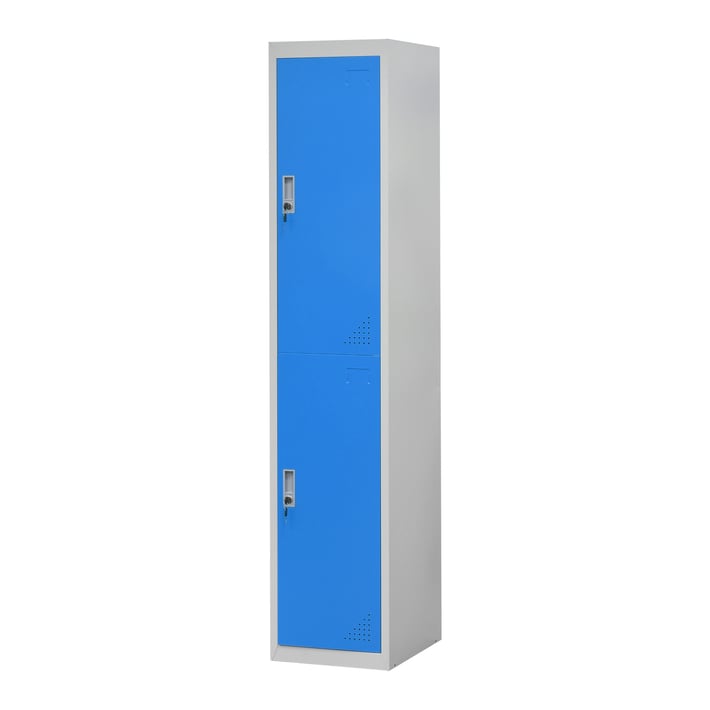 Гардероб RFG, метален, единичен, с две отделения, 38 x 45 x 185 cm, сив корпус, врати със син цвят