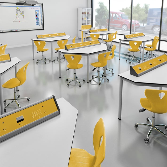 Кабинет по физика RFG Quin, над VII клас, за 24 ученика, HPL плот, метални крака, бяло-жълт