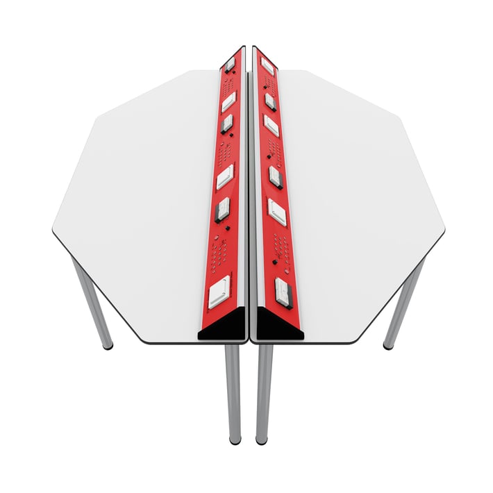 Лабораторна маса по физика RFG Hexa, над VII клас, 1700 х 1400 х 750 mm, HPL плот, червено-бяла